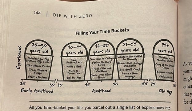 Many of us see travel as part of the deferred life plan. We will travel when we retire. That’s just what you do. Die With Zero offers many helpful reframes, but this quote stuck with me the most: “How much do you think you’ll enjoy climbing Rome’s Spanish Steps when you’re in your nineties?