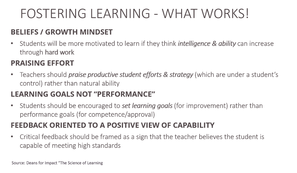 What are some better ideas? The factors that matter are the beliefs of the individual (or a growth mindset as Carol Dweck calls it), praising effort rather than “abilities”, focusing on learning goals rather than outcomes and giving feedback that is paired with a belief in the individual and their ability to meet high standards.