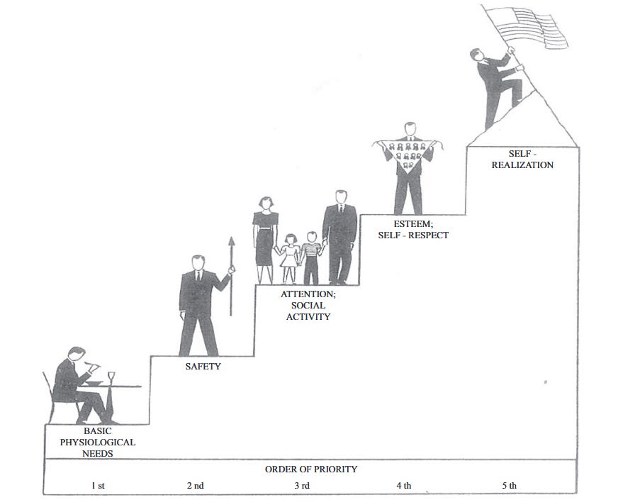 Maslow’s early research, presented in A Theory of Human Motivation (1943) presents something that feels familiar to someone who has seen the pyramid: