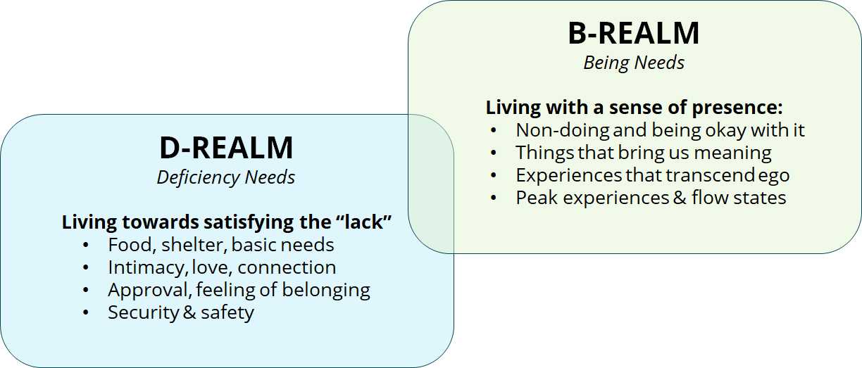 That’s what I try to show above. That despite most of us spending almost all our time trying to satisfy our d-needs - acquiring more things, attention, approval, or money - we are missing the fact that there is a b-realm close by that offers a different and more interesting lens on life.