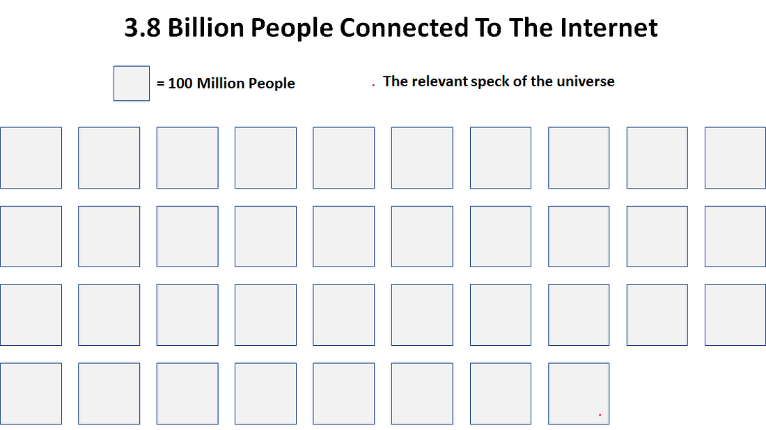 You just need to find your relevant speck of the universe. If you are working as a freelance consultant, you likely need no more than 5-10 steady clients to support your life for the next 5-10 years. If you are selling a course for $200 and want to earn $100,000 a year, you only need to worry about finding 500 people who are excited about what you are creating.